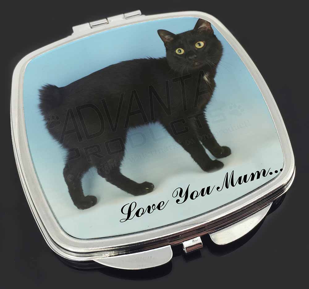 Design /Print: A Cute Black Japanese Bobtail Cat with the Wording 'Love You Mum'…