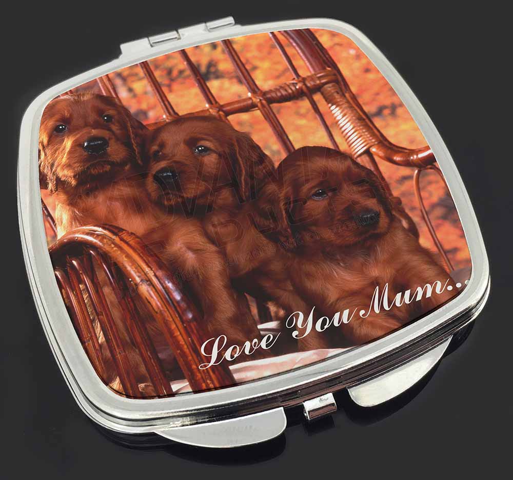 Design /Print: Three Gorgeous, Cute Irish Red Setter Puppies Sitting on a Rocking Chair with the Wording - 'Love You Mum'...