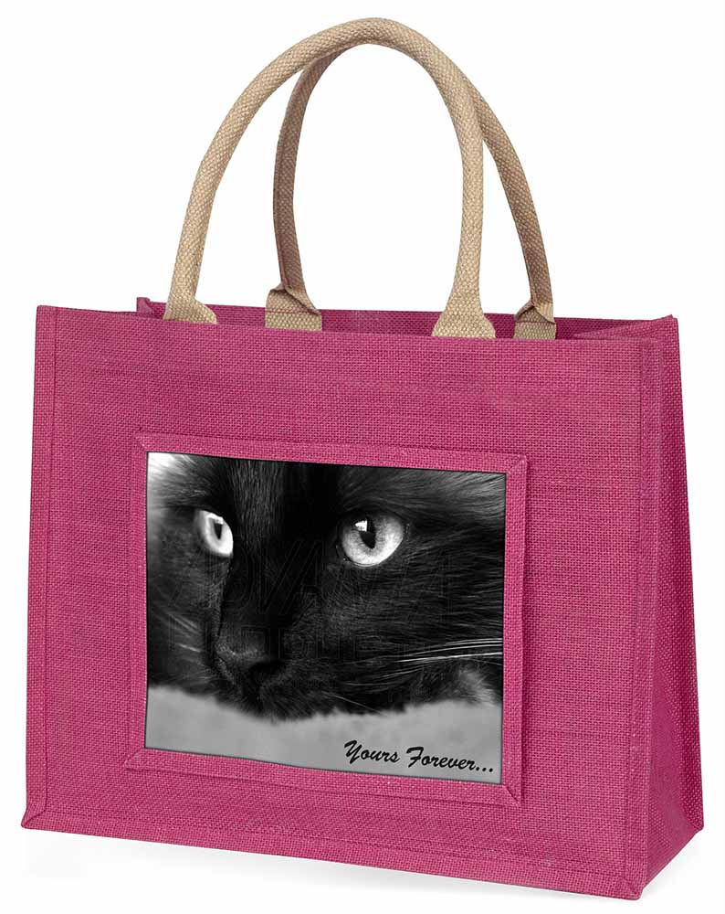 Black Cat 'Yours Forever' Large Pink Jute Shopping Bag
