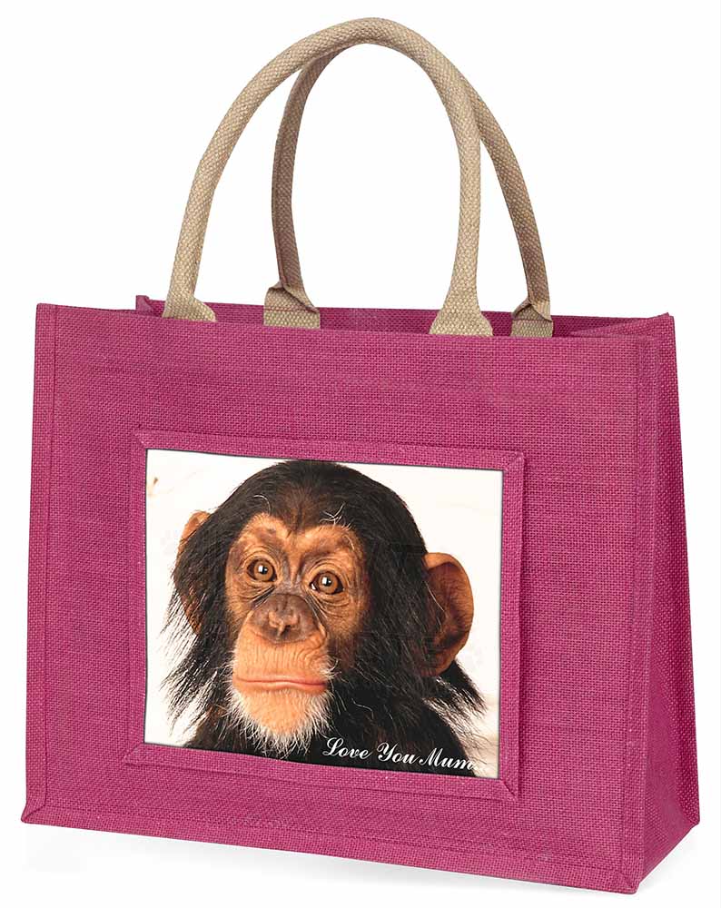 Chimpanzee 'Love You Mum' Large Pink Jute Shopping Bag