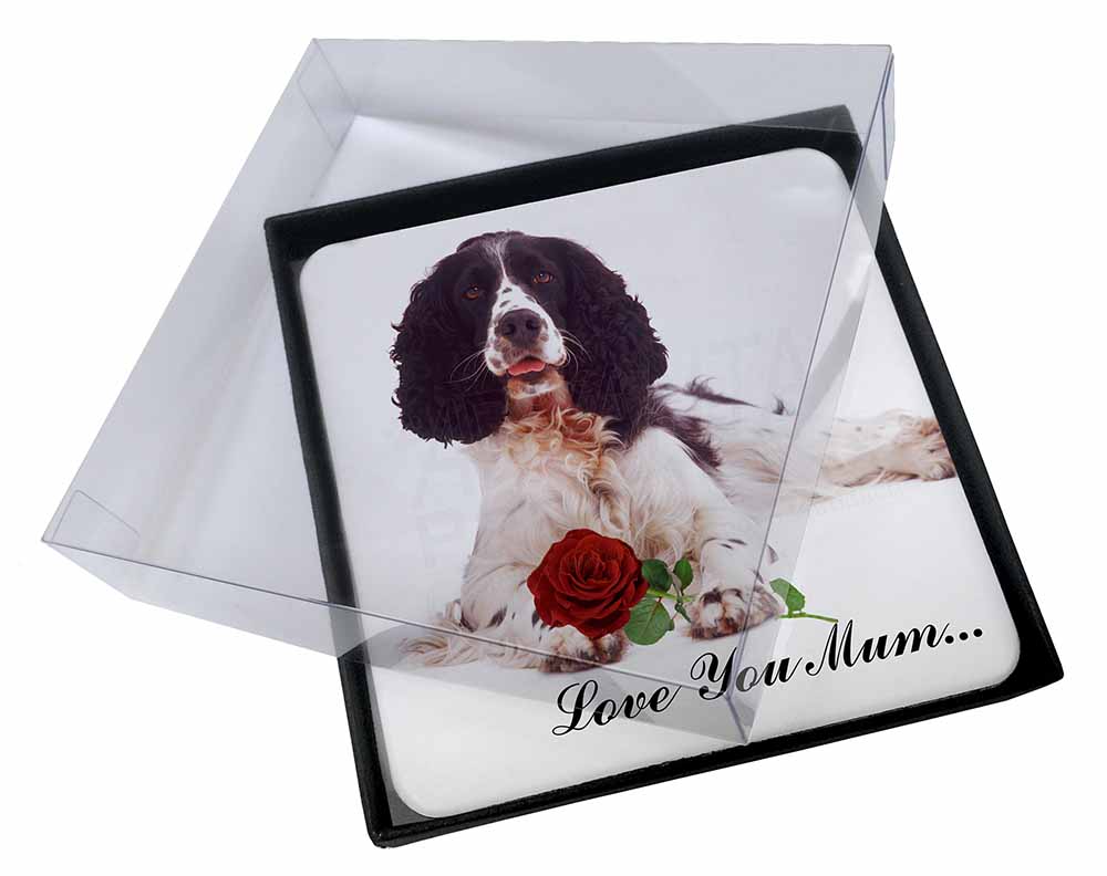 Design /Print: An Adorable Springer Spaniel Dog with Red Rose and the Wording 'Love You Mum' ...