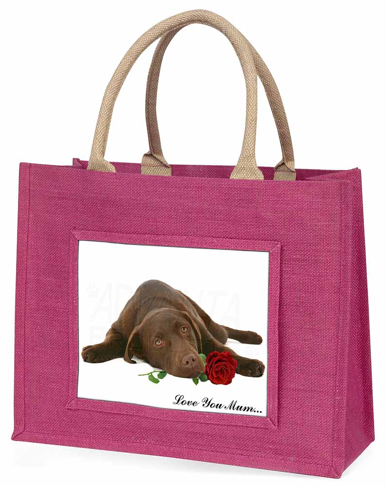 Design /Print: A Stunning Chocolate Labrador Dog with Red Rose and the Wording 'Love You Mum' ...