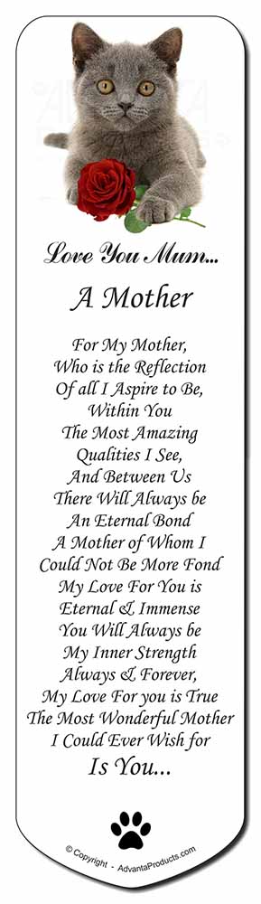 Design /Print: A Gorgeous Brittish Blue Kitten with Red Rose and the Wording 'Love You Mum' ...
