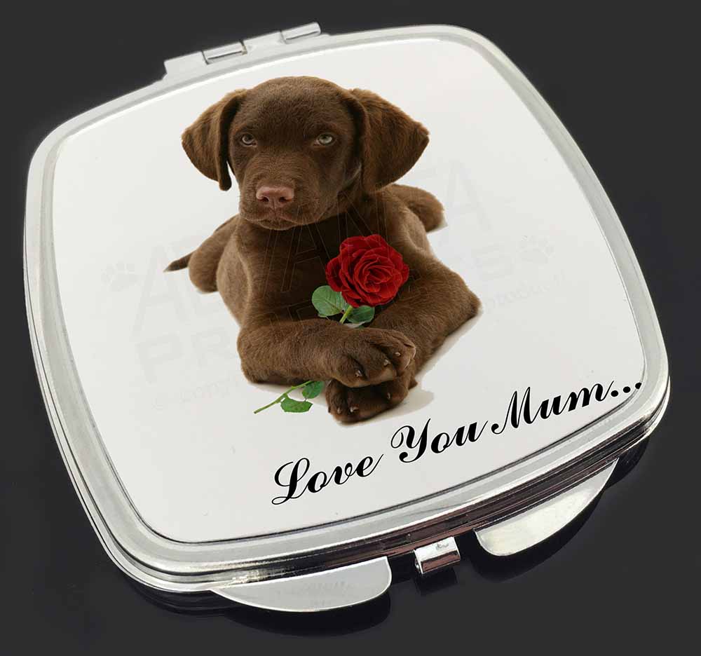 Design /Print: A Cute Chocolate Labrador Puppy with Red Rose and the Wording 'Love You Mum' ...