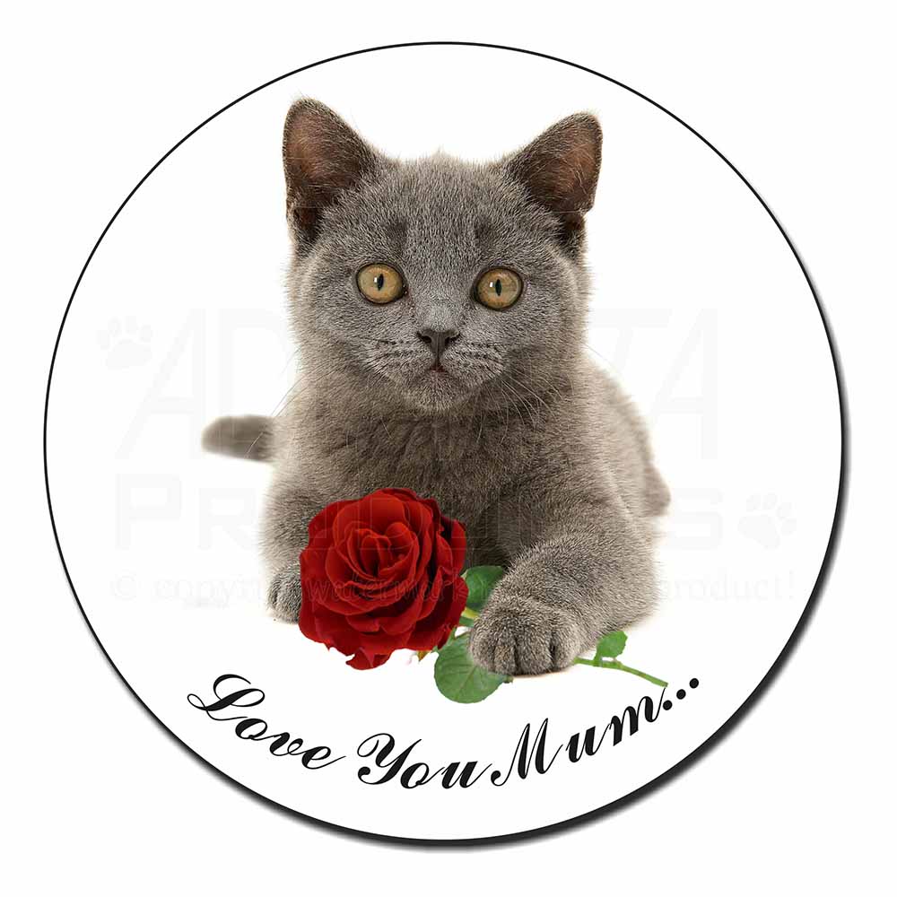 Design /Print: A Gorgeous Brittish Blue Kitten with Red Rose and the Wording 'Love You Mum' ...