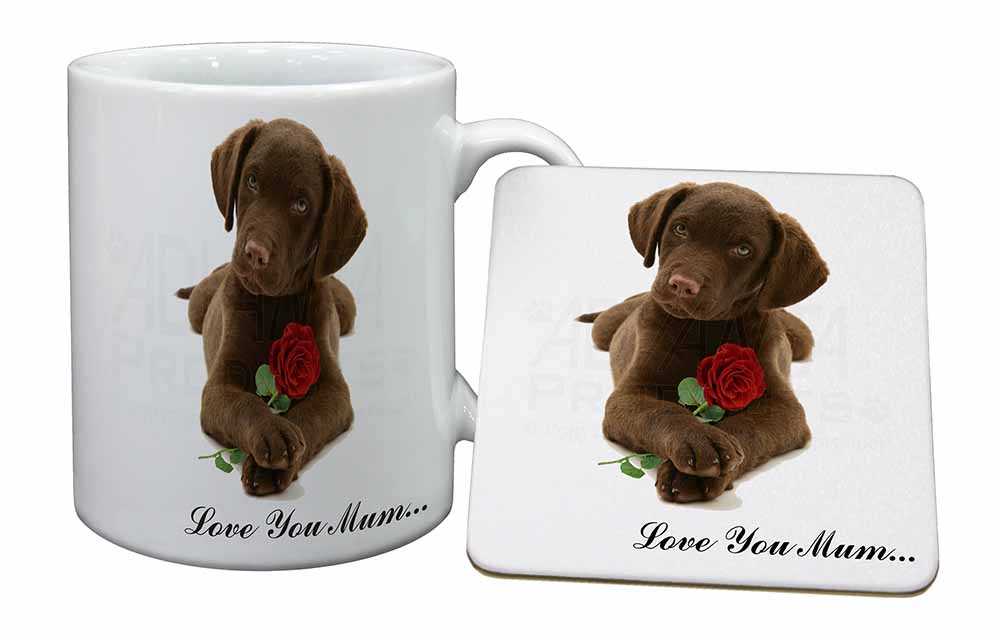 Labrador Puppy 'Love You Mum' Mug and Coaster Set
