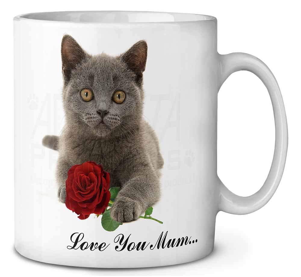 Design & Print: A Gorgeous Brittish Blue Kitten with Red Rose and the Wording 'Love You Mum' ...