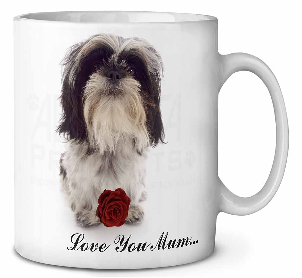 Design & Print: A Cute Shih Tzu Dog with Red Rose and the Wording 'Love You Mum' ...