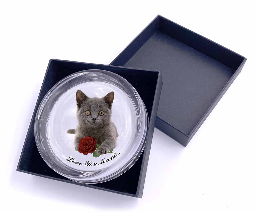 Design /Print: A Gorgeous Brittish Blue Kitten with Red Rose and the Wording 'Love You Mum' ...