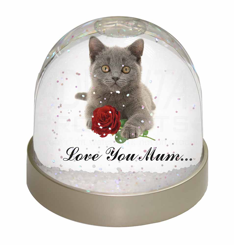 Holds a Double Sided Picture Print Of: A Gorgeous Brittish Blue Kitten with Red Rose and the Wording 'Love You Mum' ...