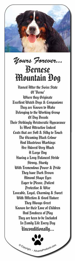Design /Print: A gorgeous Bernese Mountain Dog with a mountain range in the background, with caption "Yours Forever..."