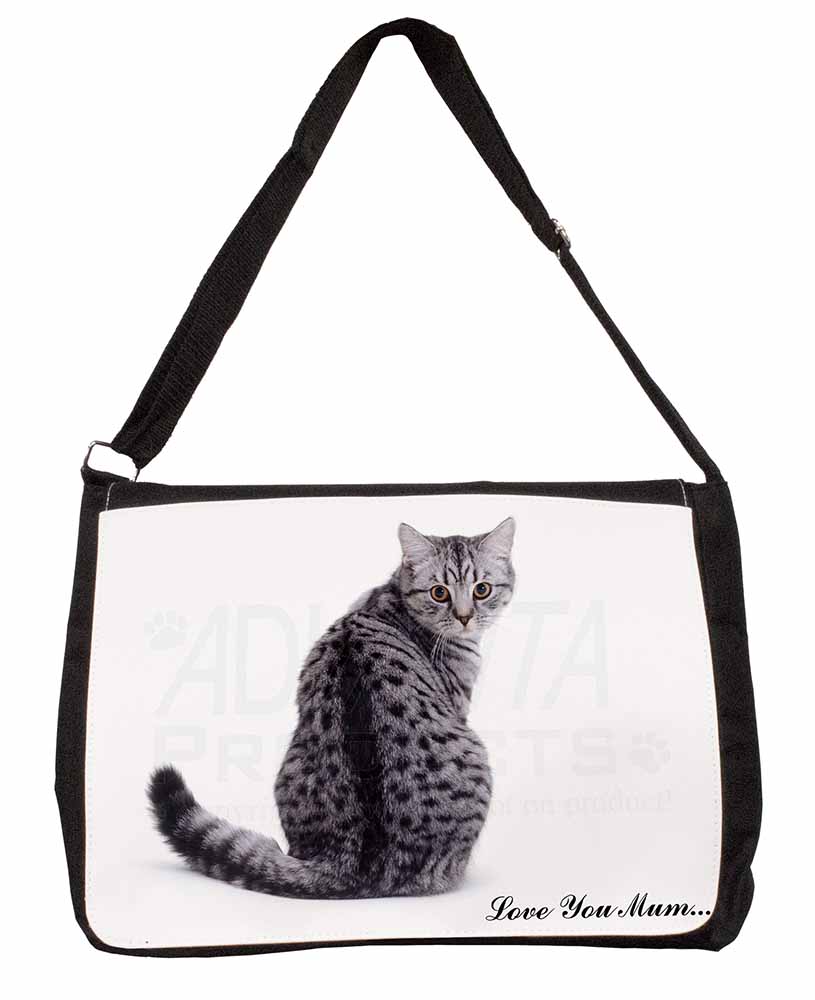 Tabby Cat 'Love You Mum' Large Black Laptop Shoulder Bag School/College