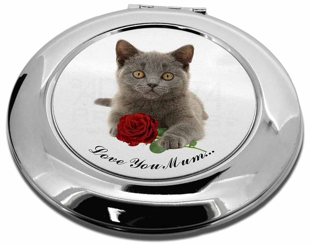 Design /Print: A Gorgeous Brittish Blue Kitten with Red Rose and the Wording 'Love You Mum' ...