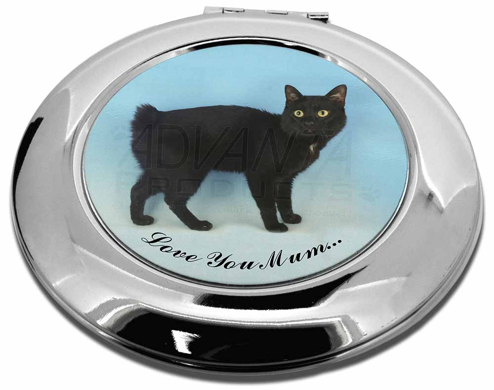 Design /Print: A Cute Black Japanese Bobtail Cat with the Wording 'Love You Mum'…
