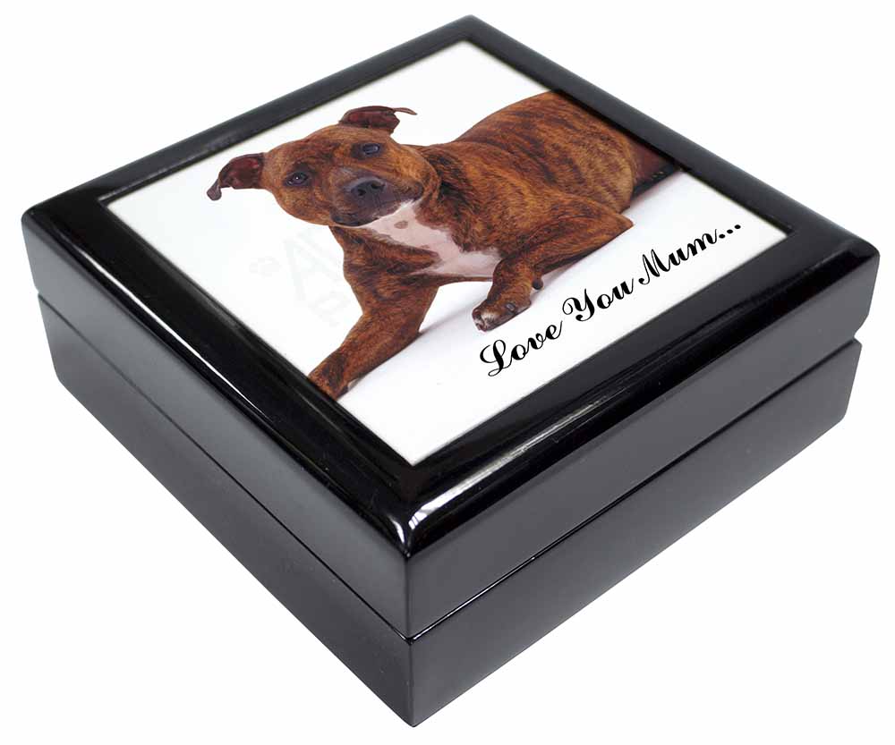Design /Print: A Gorgeous Brindle Staffordshire Bull Terrier Dog with the Wording 'Love You Mum'...