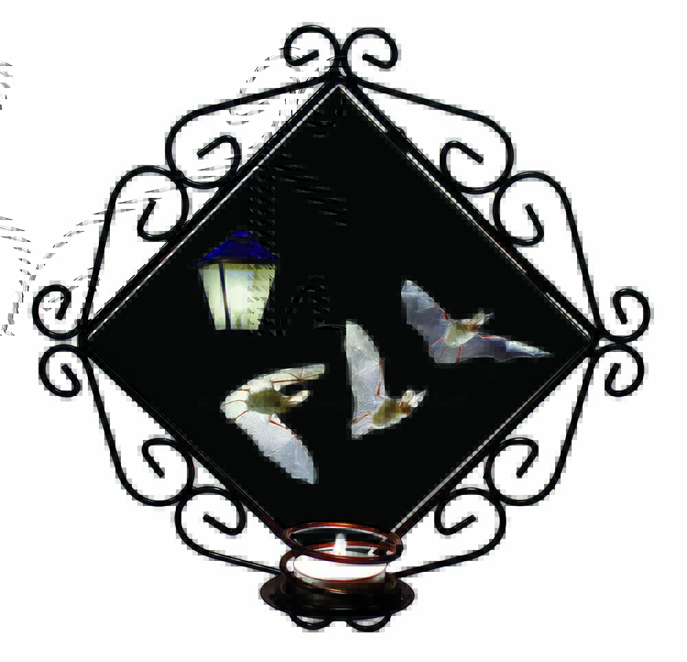Bats by Lantern Night Light Wrought Iron Wall Art Candle Holder