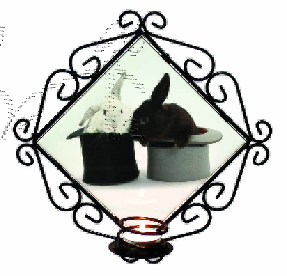 Rabbits in Top Hats Wrought Iron Wall Art Candle Holder