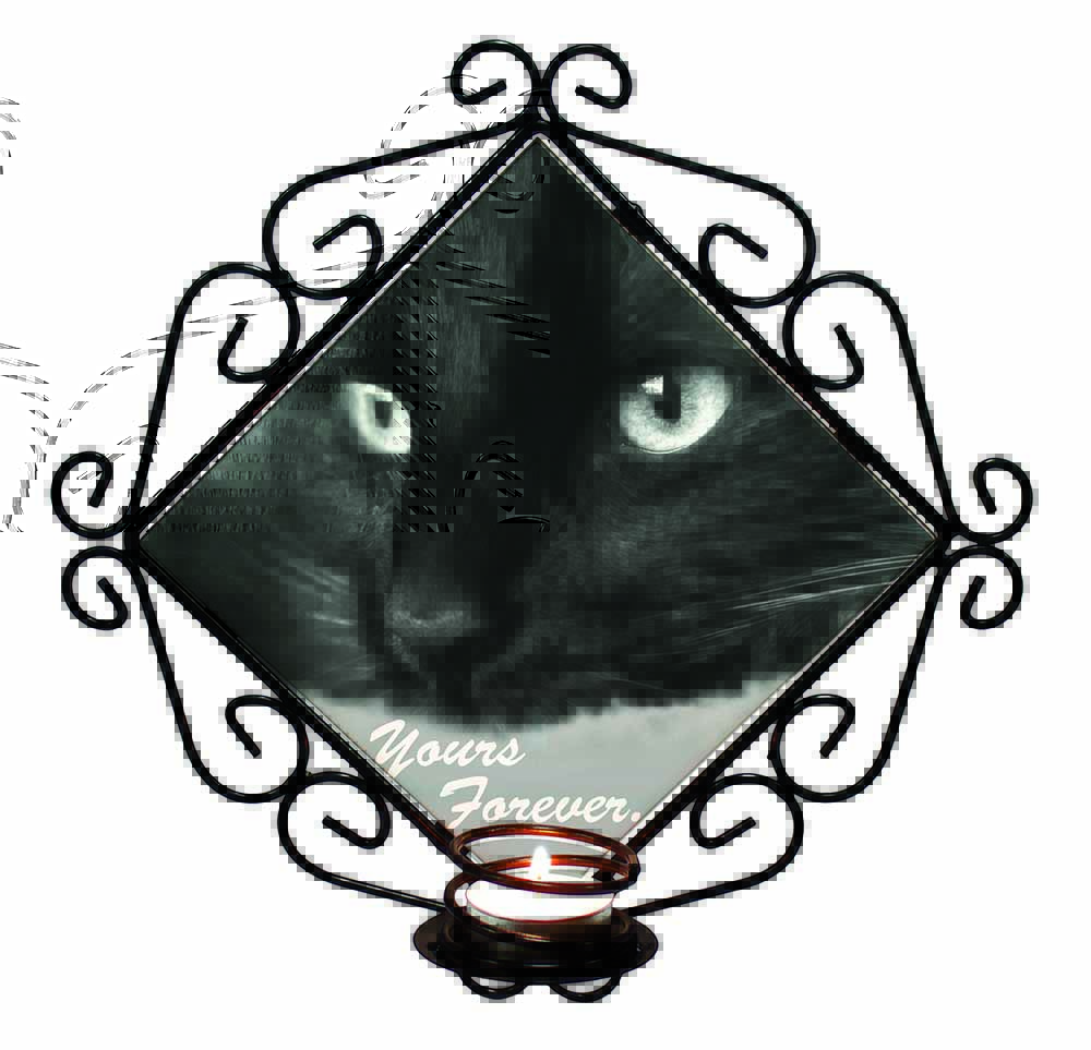 Black Cat 'Yours Forever' Wrought Iron Wall Art Candle Holder