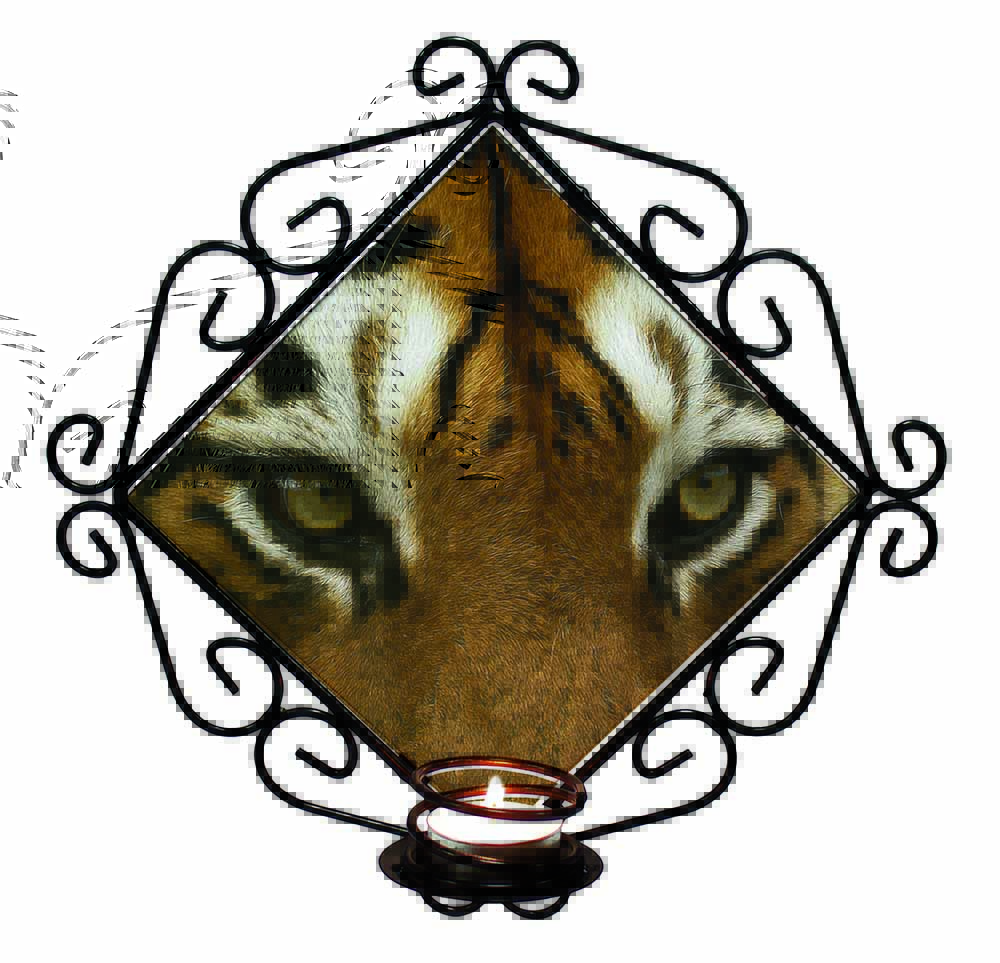 Face of a Bengal Tiger Wrought Iron Wall Art Candle Holder