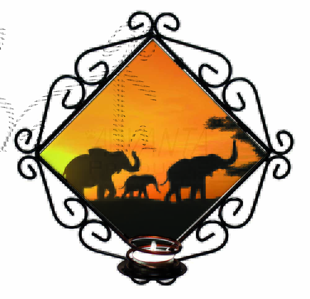 Elephants Silhouette Wrought Iron Wall Art Candle Holder
