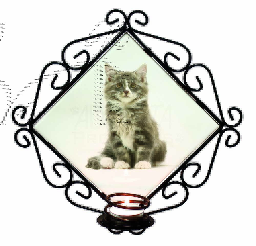 Cute Tabby Kitten Wrought Iron Wall Art Candle Holder