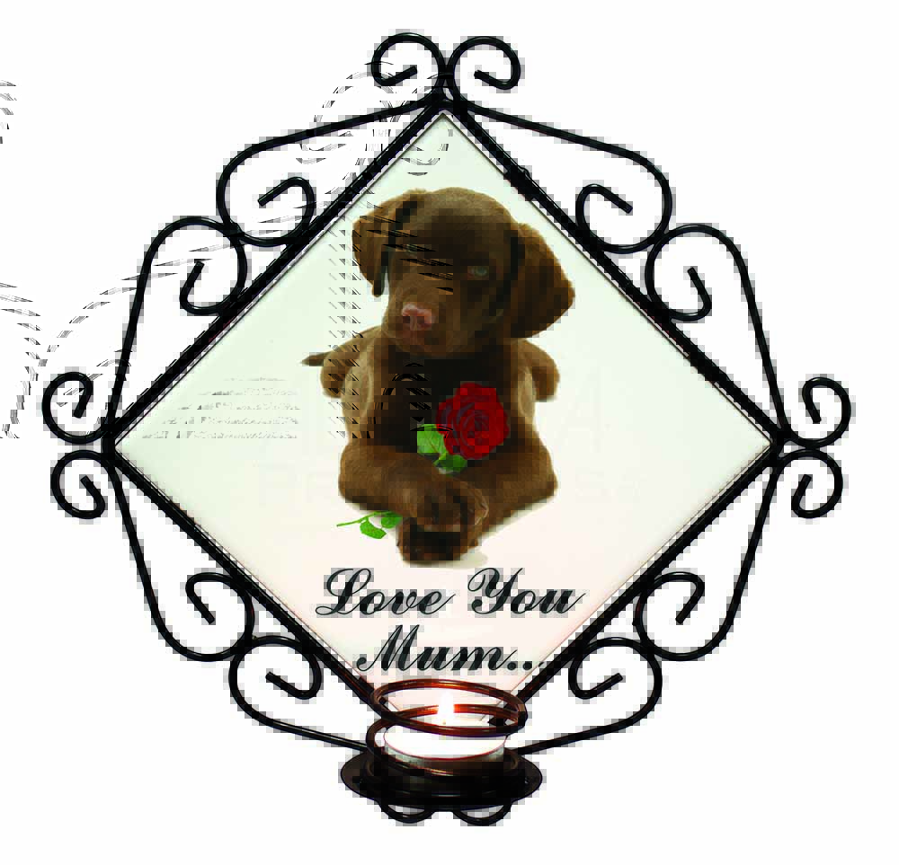Labrador Puppy 'Love You Mum' Wrought Iron Wall Art Candle Holder