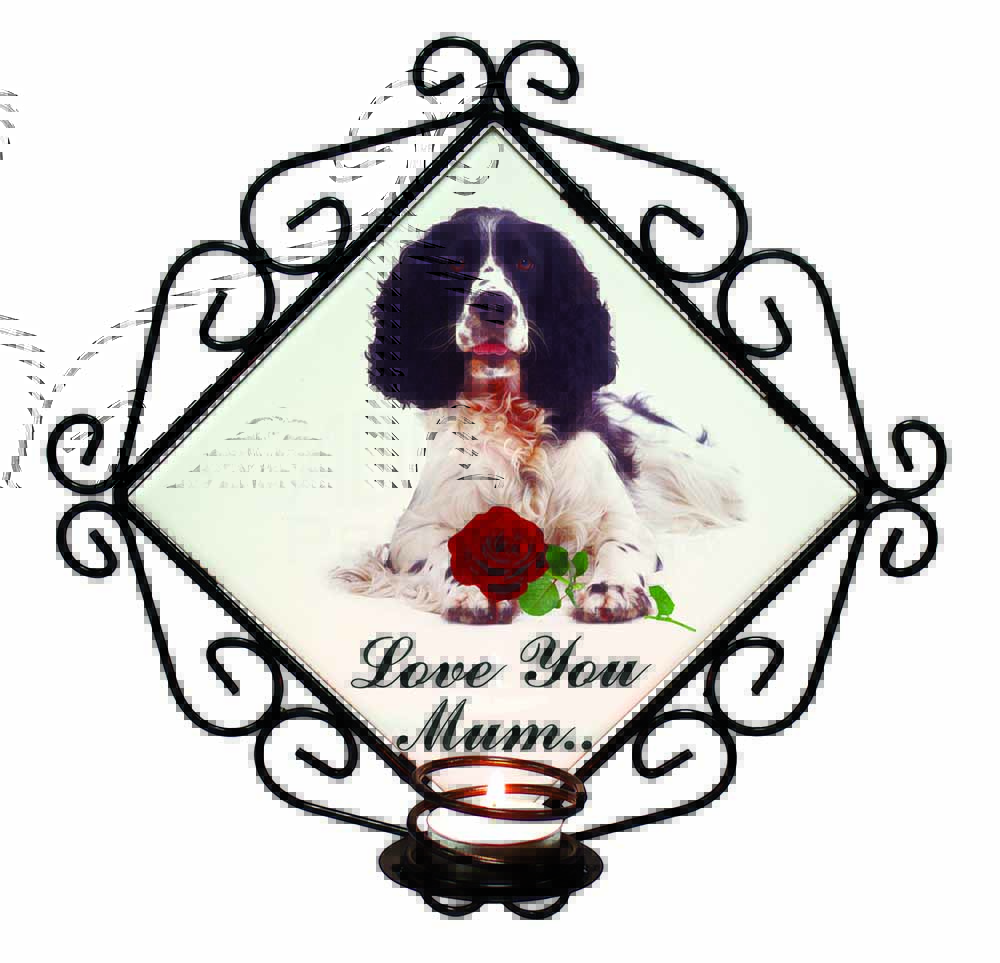 Springer with Rose 'Love You Mum' Wrought Iron Wall Art Candle Holder