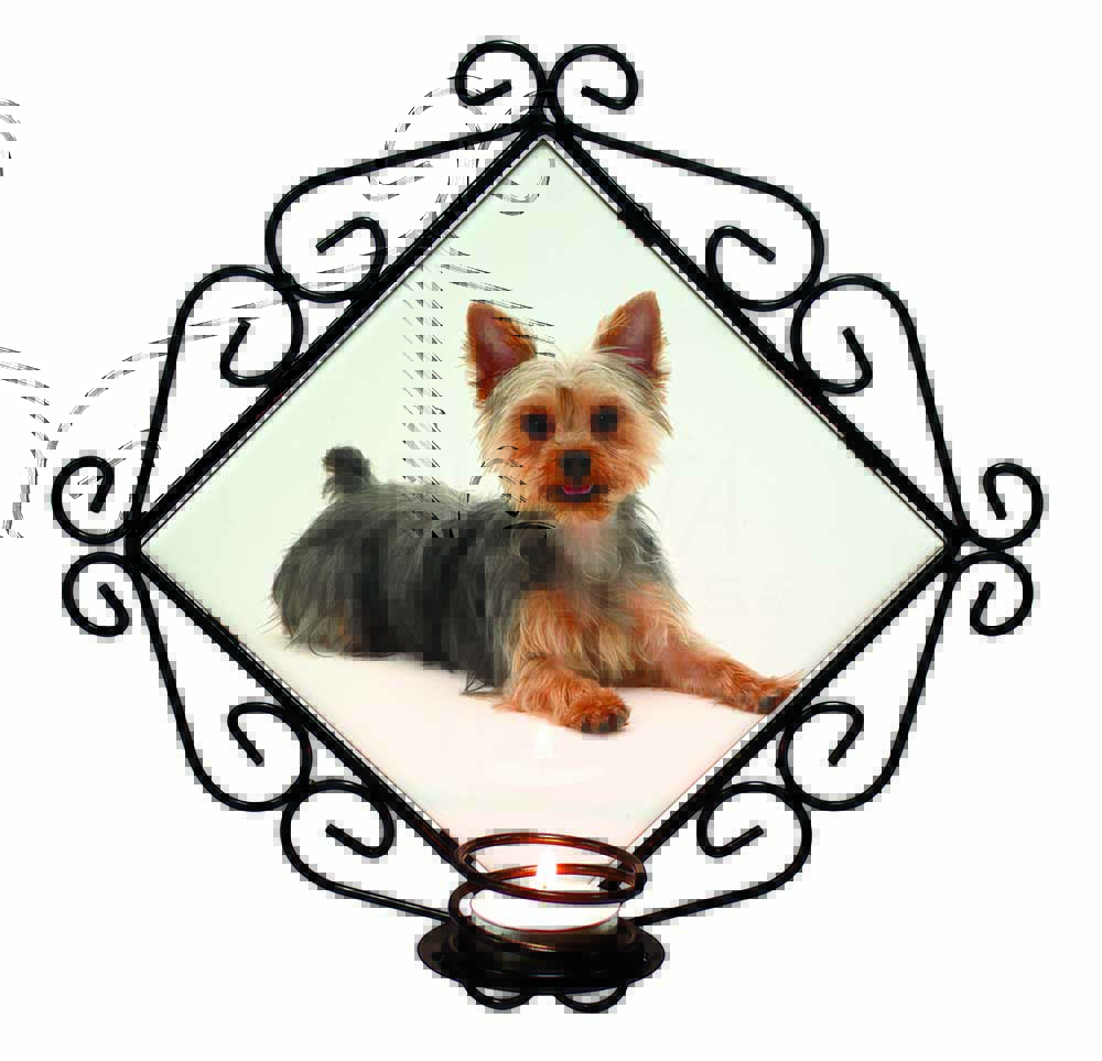 Yorkshire Terrier Dog Wrought Iron Wall Art Candle Holder