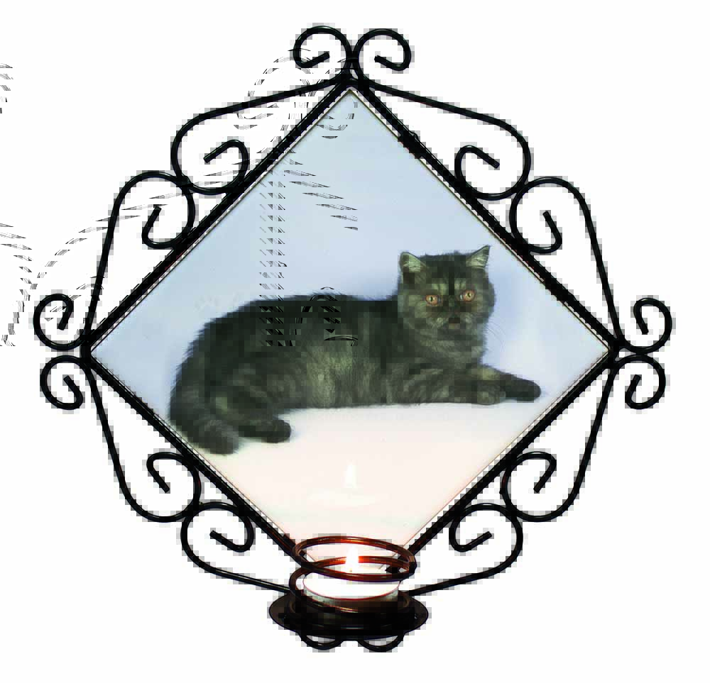 Exotic Smoke Cat Wrought Iron Wall Art Candle Holder