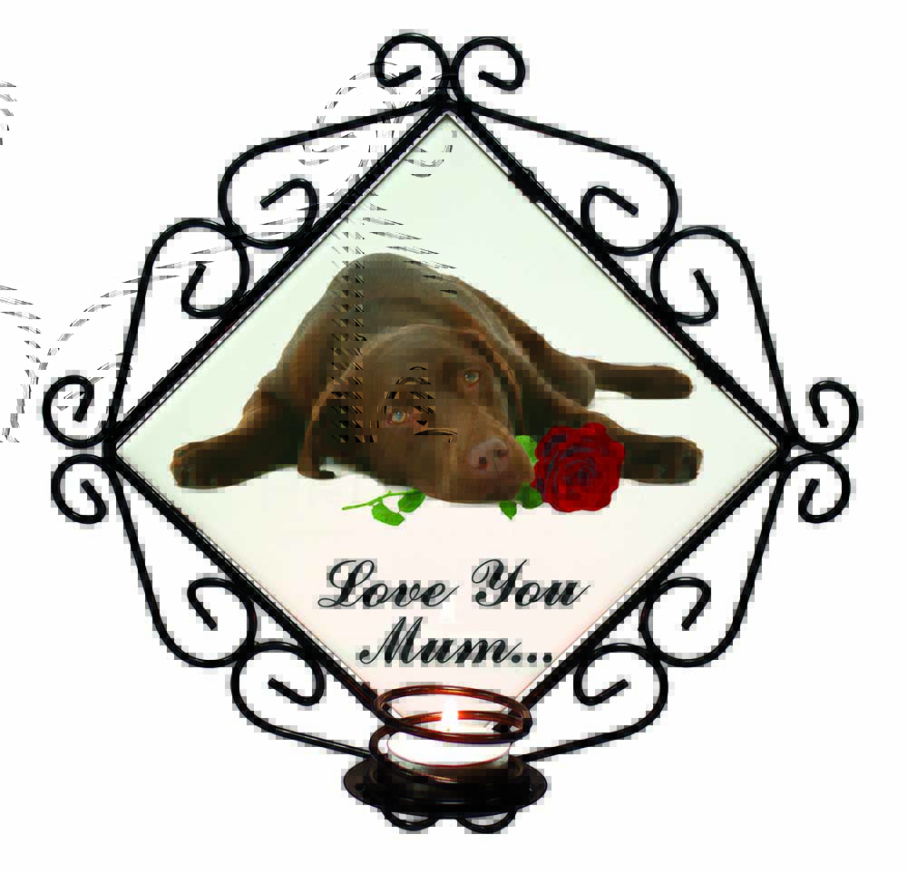 Choc Labrador with Rose 'Love You Mum' Wrought Iron Wall Art Candle Holder