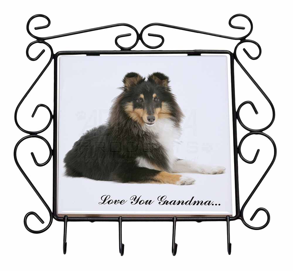 Sheltie Dog 'Love You Grandma' Wrought Iron Key Holder Hooks