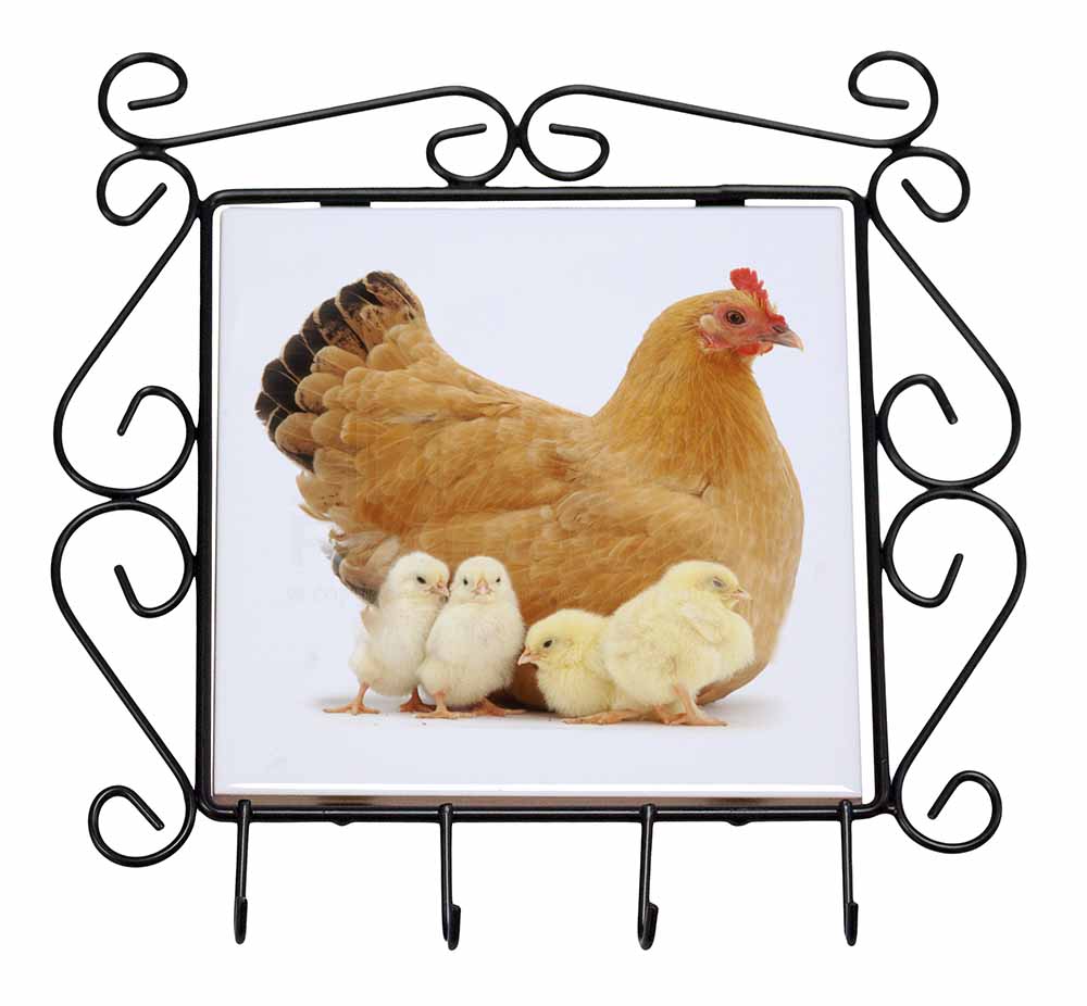 Hen with Baby Chicks Wrought Iron Key Holder Hooks