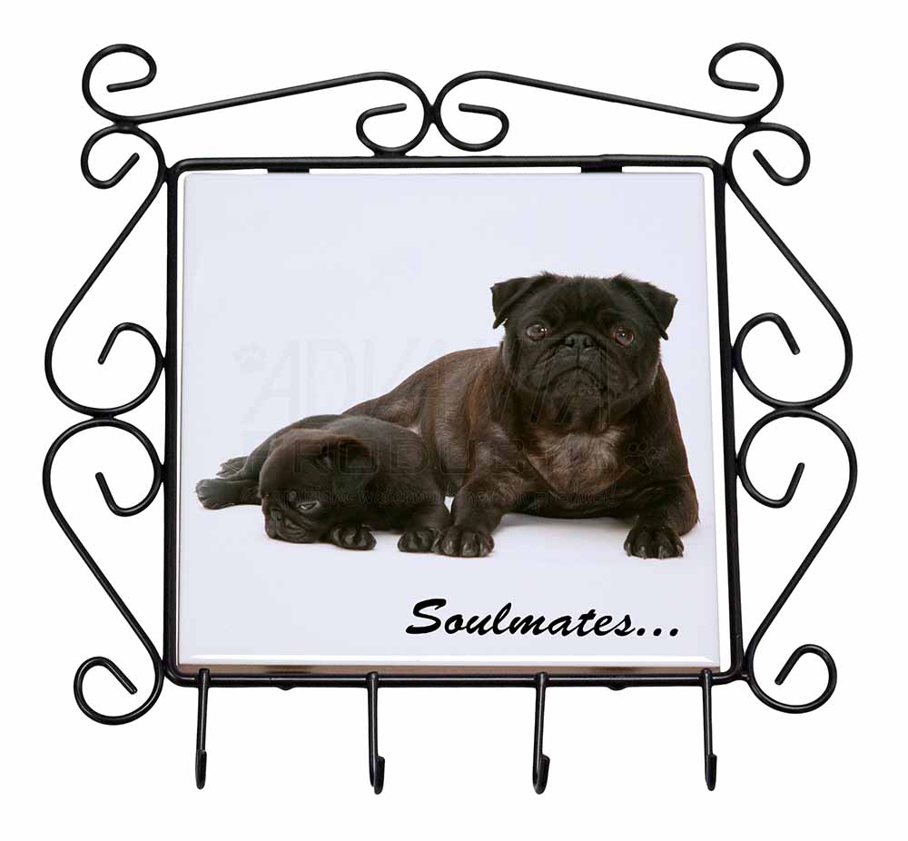Black Pug Dogs 'Soulmates' Wrought Iron Key Holder Hooks