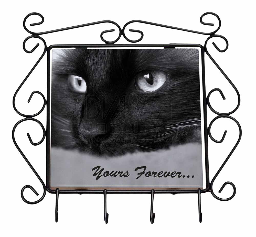 Black Cat 'Yours Forever' Wrought Iron Key Holder Hooks