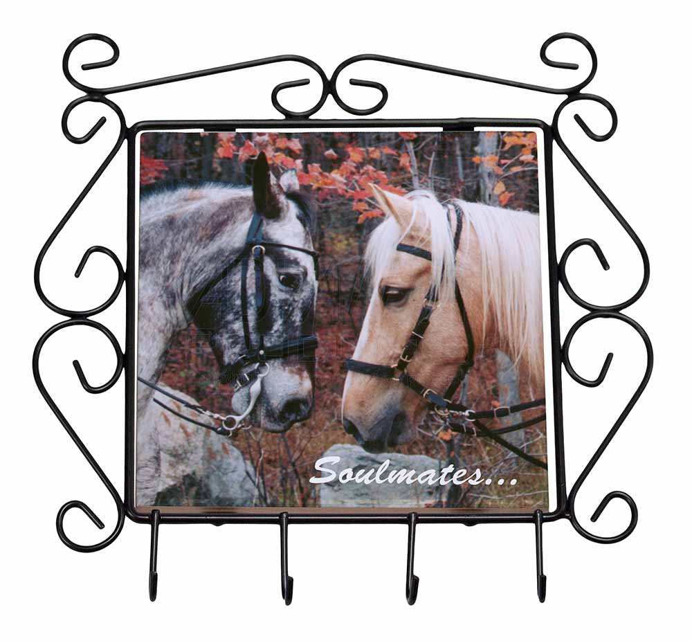 Horses in Love 'Soulmates' Sentiment Wrought Iron Key Holder Hooks