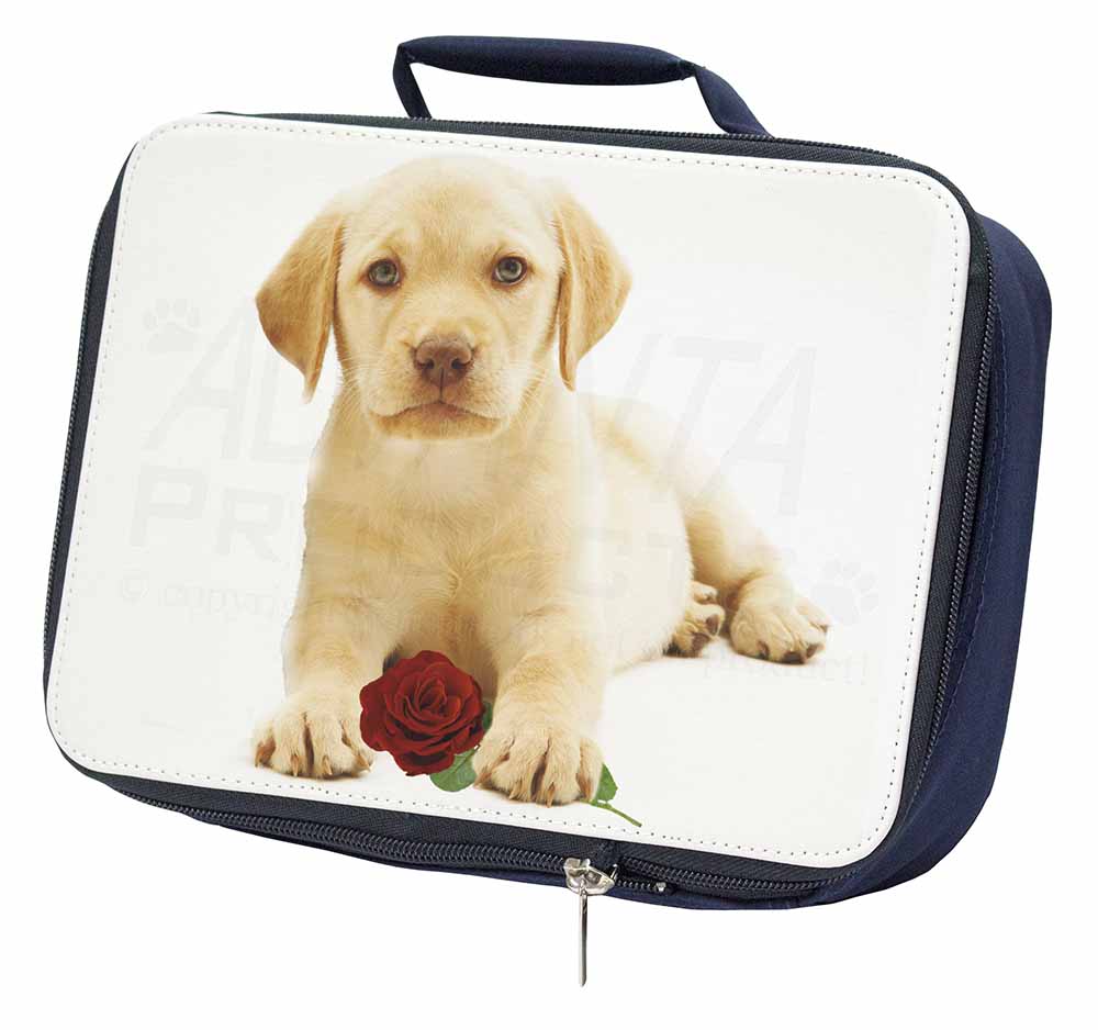 Design /Print: A Content and Beautiful Yellow Labrador Puppy Dog with a Red Rose...