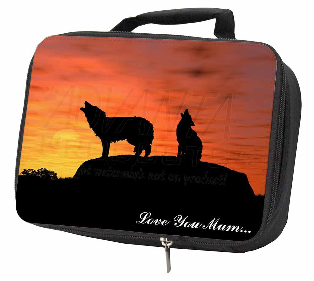 Design /Print: The Stunning Sight of Two Howling Wolves Silhouettes on a Rocky Ridge at Sunset with the Wording 'Love You Mum'...