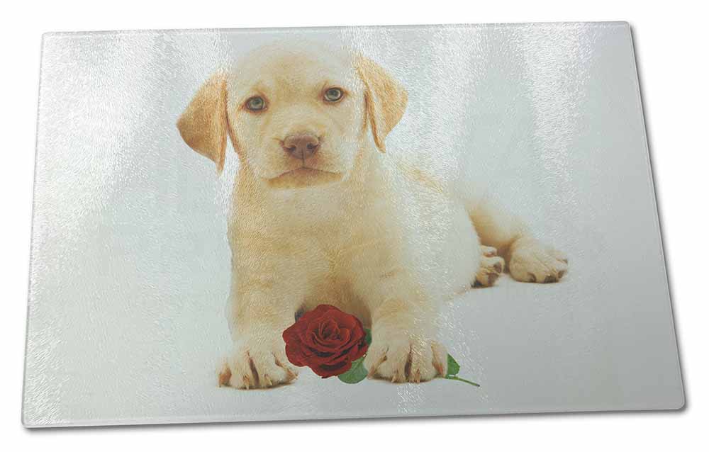 Design /Print: A Content and Beautiful Yellow Labrador Puppy Dog with a Red Rose...