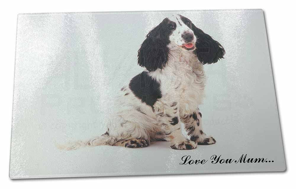 Design /Print: A Stunning Black & White Cocker Spaniel on a White Background with the Wording 'Love You Mum'...