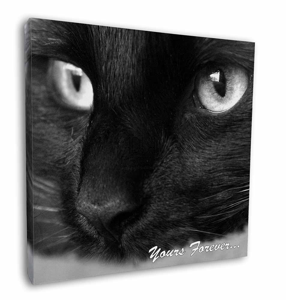 Black Cat 'Yours Forever' Square Canvas 12"x12" Wall Art Picture Print
