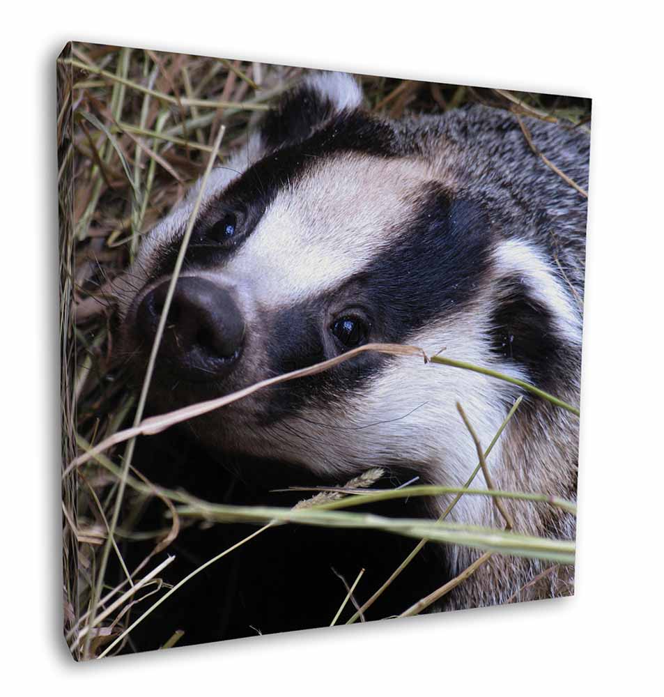 Badger in Straw Square Canvas 12"x12" Wall Art Picture Print