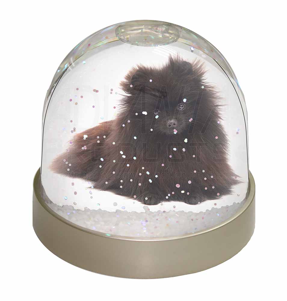 Holds a Double Sided Picture Print Of: A Stunning Black Pomeranian Dog on a White Background…