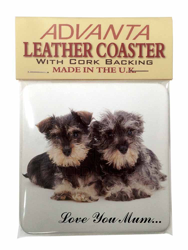 Schnauzers 'Love You Mum' Single Leather Photo Coaster