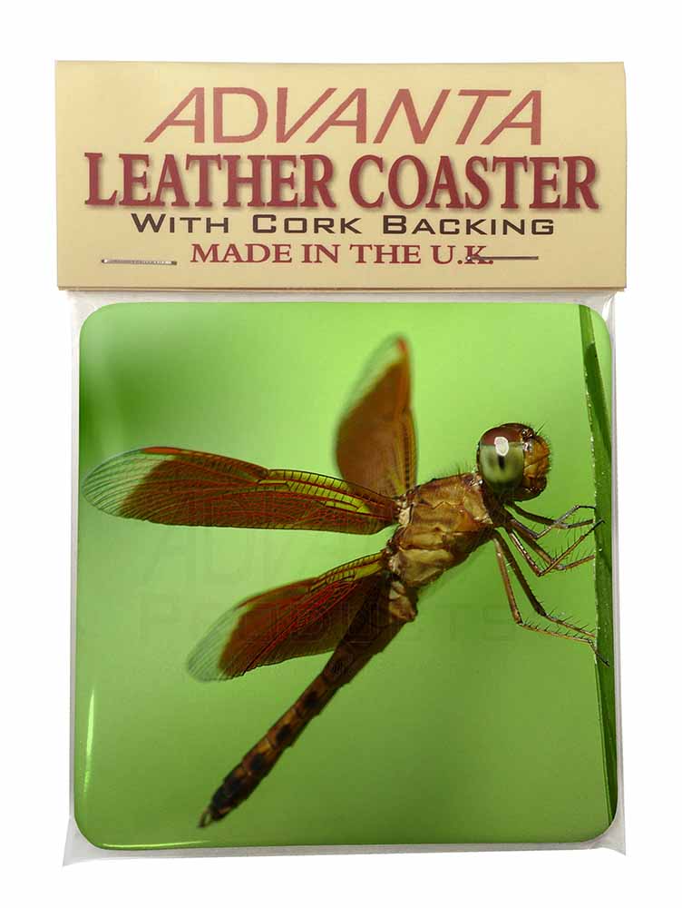 Dragonflies, Close-Up Dragonfly Print Single Leather Photo Coaster