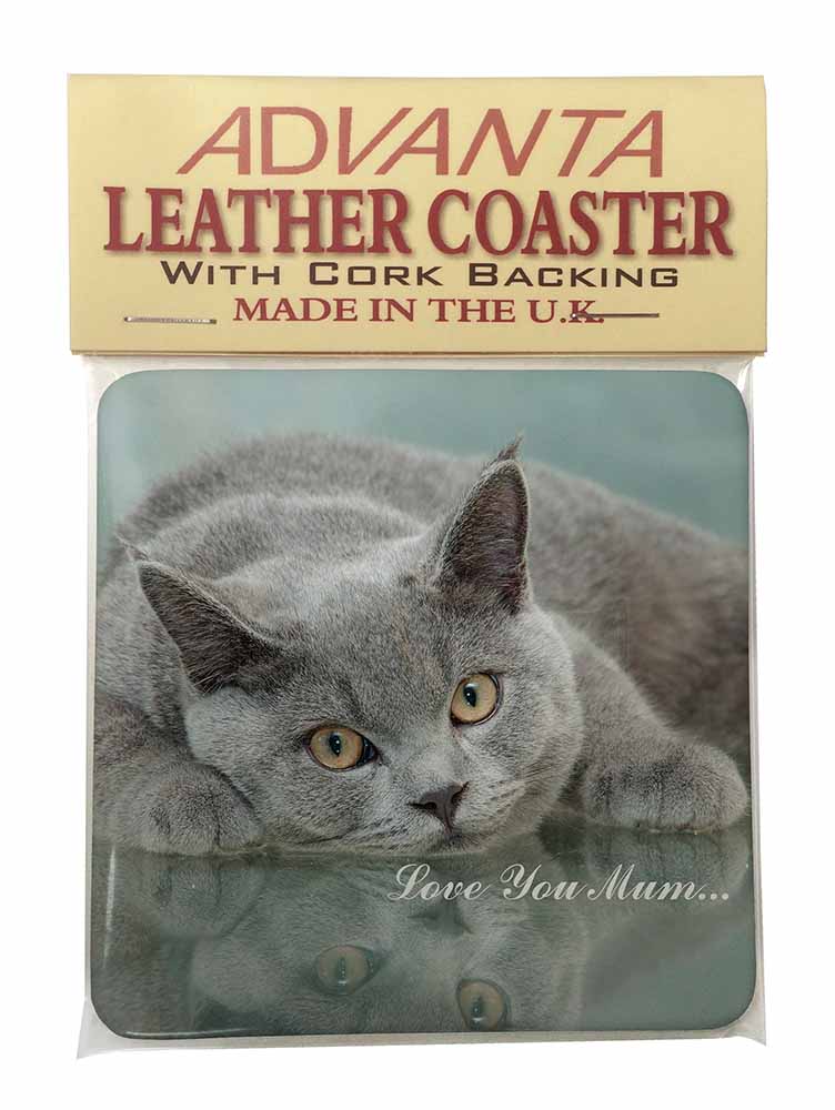 British Blue Cat 'Love You Mum' Single Leather Photo Coaster