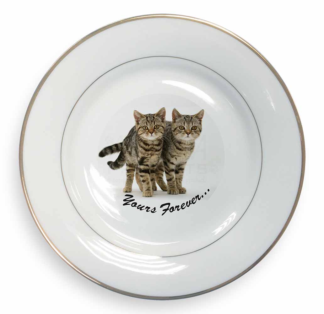Tabby Cats 'Yours Forever' Gold Rim Plate Printed Full Colour in Gift Box