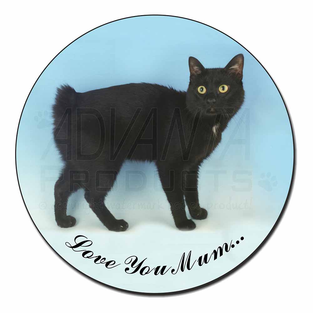 Design /Print: A Cute Black Japanese Bobtail Cat with the Wording 'Love You Mum'…