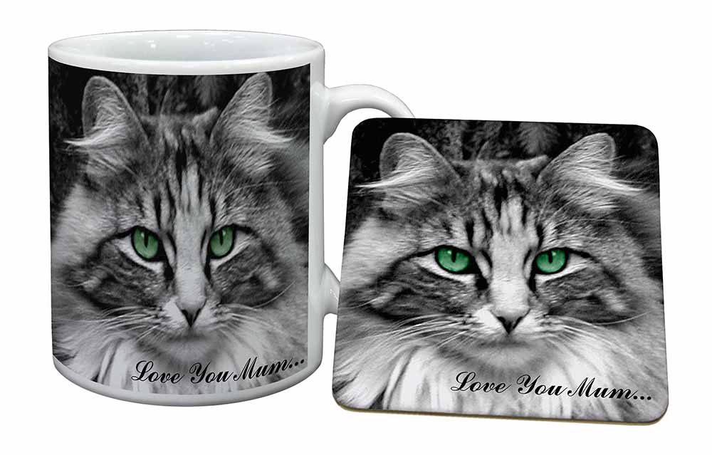 Beautiful Cat 'Love You Mum' Mug and Coaster Set