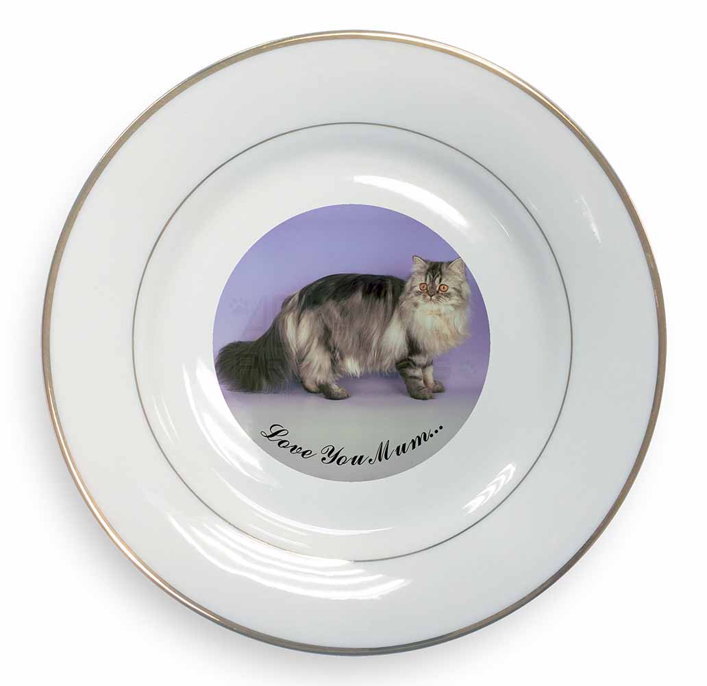 Persian Cat 'Love You Mum' Gold Rim Plate Printed Full Colour in Gift Box