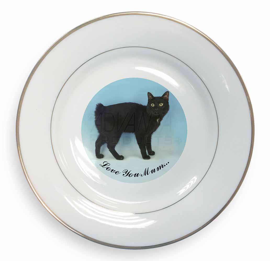 Design /Print: A Cute Black Japanese Bobtail Cat with the Wording 'Love You Mum'…